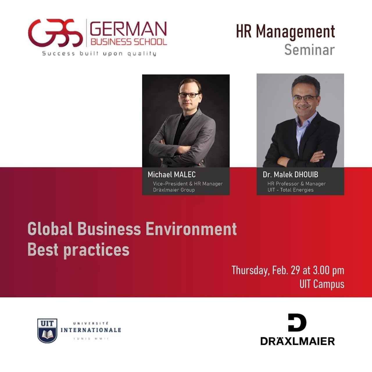 German Business School organizes a Seminar on Best practices for the Global Business Environment with HR experts. The event focuses on Cultural diversity, International Leadership, HR & Transformation.